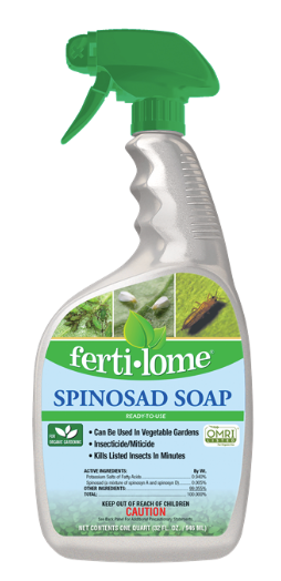 Designed for outdoor residential use in gardens, lawns, ornamentals, and greenhouses, Fertilome Spinosad Soap 32oz RTU effectively targets a broad range of pests. Controlled insects include adelgids, ants, aphids, armyworms, various beetles like the Colorado potato beetle, borers, caterpillars, chinch bugs, codling moth, earwigs, fruit flies, gypsy moth, lace bugs, leafhoppers, leafminers, leafrollers, loopers, mealybugs, mites, mole crickets, plant bugs, psyllids, sawfly larvae, scale insects, spider mites, tent caterpillars, thrips, webworms, weevils, and whiteflies. The formula contains 0.940% potassium salts of fatty acids and 0.005% spinosad for effective pest control.